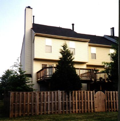 Now we've entered the back yard through the door in the fence, so we can see the back of the house on the lower level.